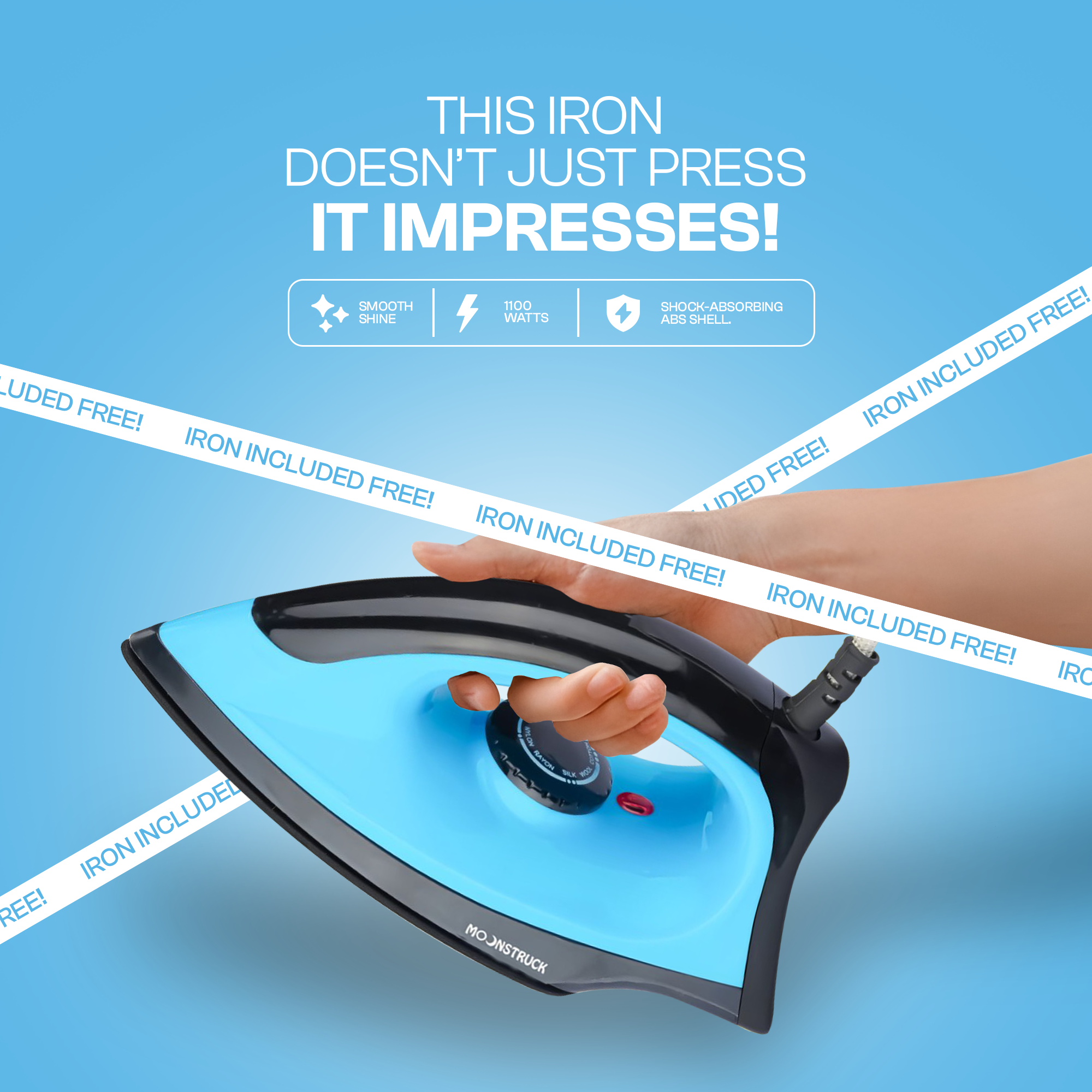 Moonstruck iron heats up quickly for efficient ironing and perfect creases. Its adjustable temperature is suitable for cotton, silk, wool, and synthetic fabrics.