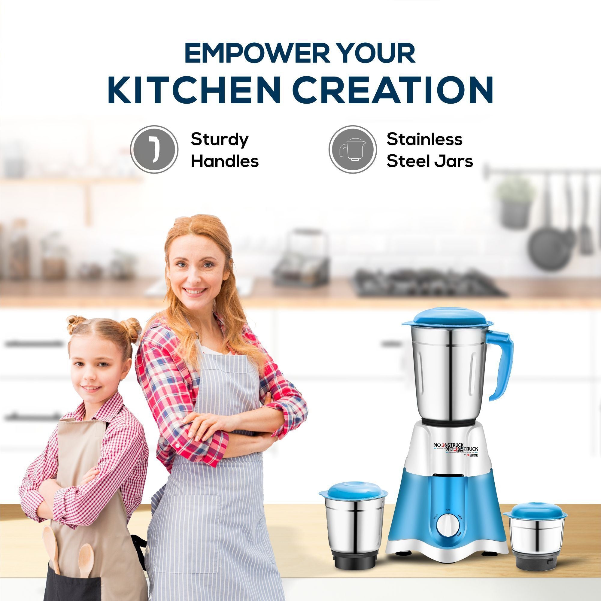 Introducing our powerful and versatile 750 watt 3-jar blue mixer grinder, designed to elevate your culinary experience. With its robust 750 watt motor, this mixer grinder effortlessly handles a variety of ingredients, ensuring smooth blending, grinding, and mixing every time. The set includes three high-quality stainless steel jars, each tailored for specific tasks - from grinding spices and pulses to blending smoothies and making chutneys. The vibrant blue color adds a stylish touch to your kitchen decor, while the compact design saves valuable countertop space.