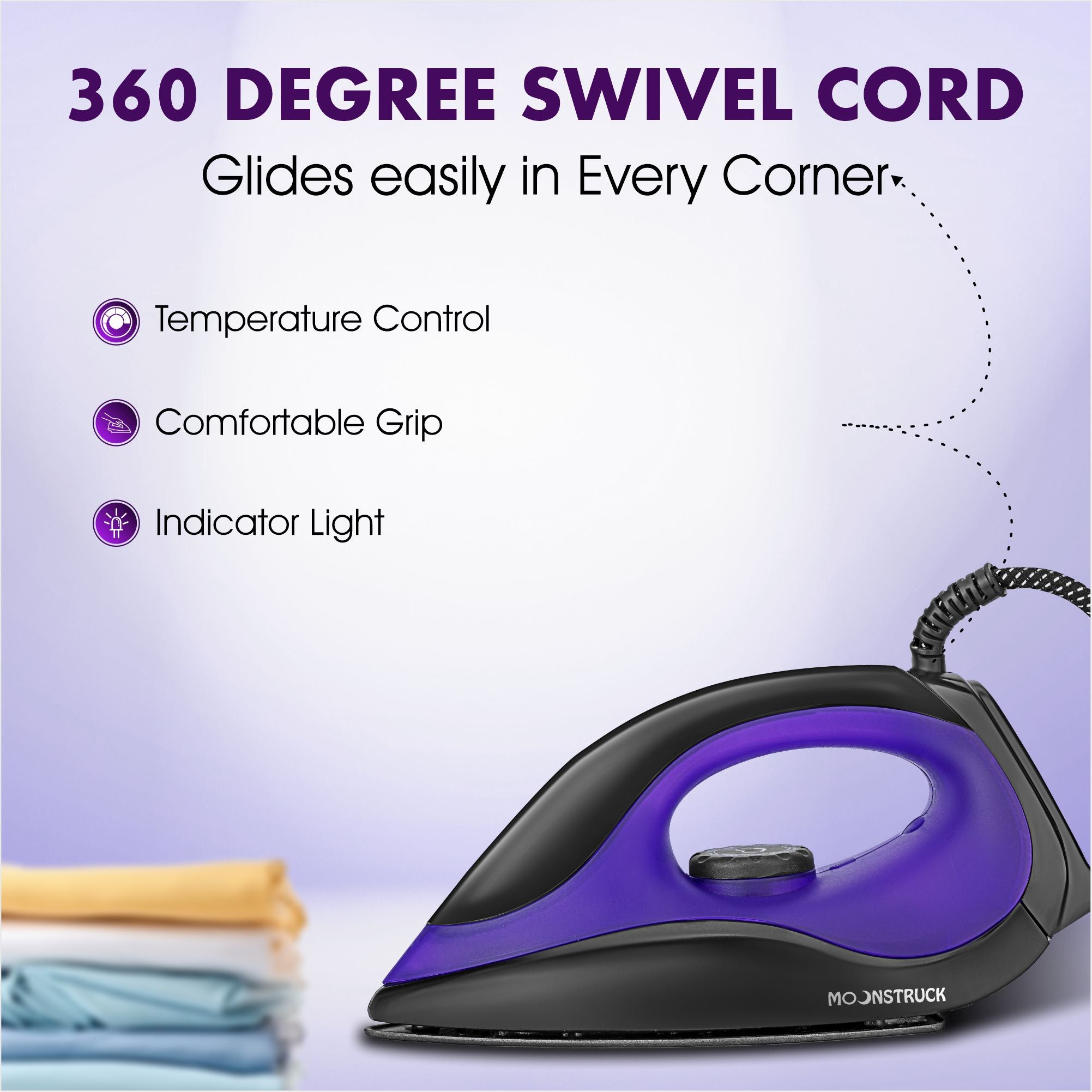 With a 360-degree swivel cord, this dry iron ensures maximum flexibility and ease of use. The tangle-free design allows unrestricted movement, so you can glide the iron effortlessly in any direction without worrying about cord entanglement. The swivel cord ensures longevity, reducing wear and tear and maintaining this iron’s performance over time.
